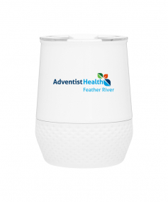 12 oz double wall 18/8 stainless steel thermal tumbler with copper vacuum insulation, push-on lid, matching swivel closure, and removable silicone base.