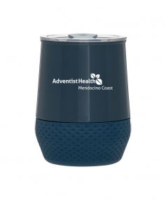 12 oz double wall 18/8 stainless steel thermal tumbler with copper vacuum insulation, push-on lid, matching swivel closure, and removable silicone base.