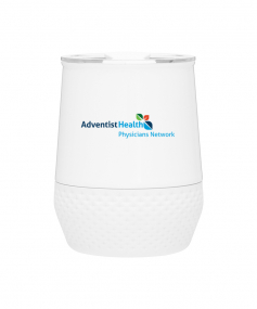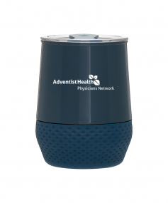 12 oz double wall 18/8 stainless steel thermal tumbler with copper vacuum insulation, push-on lid, matching swivel closure, and removable silicone base.