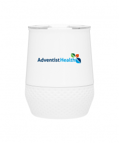 12 oz double wall 18/8 stainless steel thermal tumbler with copper vacuum insulation, push-on lid, matching swivel closure, and removable silicone base.