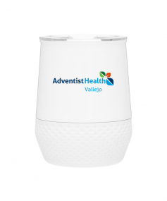 12 oz double wall 18/8 stainless steel thermal tumbler with copper vacuum insulation, push-on lid, matching swivel closure, and removable silicone base.