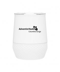 12 oz double wall 18/8 stainless steel thermal tumbler with copper vacuum insulation, push-on lid, matching swivel closure, and removable silicone base.