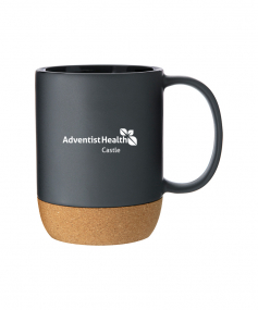 13 oz stoneware: matte color out / gloss color in with cork baseHand wash recommended. Do not microwave. Complies with FDA, Prop 65. 4.625" H x 5" W