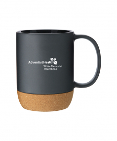 13 oz stoneware: matte color out / gloss color in with cork baseHand wash recommended. Do not microwave. Complies with FDA, Prop 65. 4.625" H x 5" W