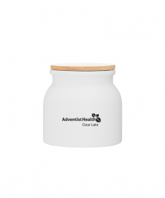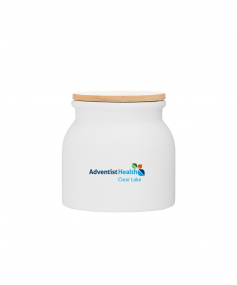 16.9 oz stoneware: matte white out / glossy white in with push-on bamboo lid; Hand wash recommended; Microwave safe with non-metallic imprint; 4 3/16 h x 4 3/16 (w/handle) w ; 500mL.