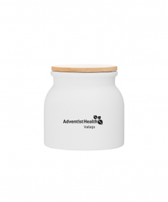 16.9 oz stoneware: matte white out / glossy white in with push-on bamboo lid; Hand wash recommended; Microwave safe with non-metallic imprint; 4 3/16 h x 4 3/16 (w/handle) w ; 500mL.