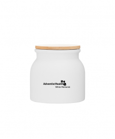 16.9 oz stoneware: matte white out / glossy white in with push-on bamboo lid; Hand wash recommended; Microwave safe with non-metallic imprint; 4 3/16 h x 4 3/16 (w/handle) w ; 500mL.