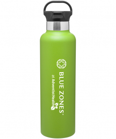 24 oz powder coated double wall 18/8 stainless steel thermal bottle with copper vacuum insulation, threaded gear-shaped insulated lid and carrying handle Complies with FDA, Prop 65. 11.25" H x 3" W