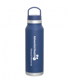 25 oz double wall 18/8 stainless steel thermal bottle with copper vacuum insulation, threaded insulated lid with carrying handle, high polish accent, stainless steel base, and powder coated finish. Hand wash recommended; Do not microwave. Dimensions: 10 H x 3".