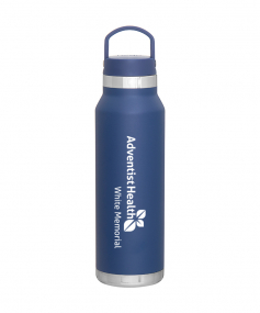 25 oz double wall 18/8 stainless steel thermal bottle with copper vacuum insulation, threaded insulated lid with carrying handle, high polish accent, stainless steel base, and powder coated finish. Hand wash recommended; Do not microwave. Dimensions: 10 H x 3".