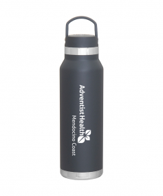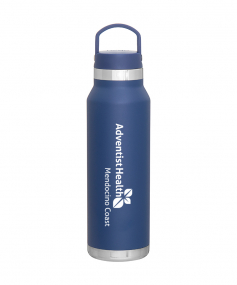 25 oz double wall 18/8 stainless steel thermal bottle with copper vacuum insulation, threaded insulated lid with carrying handle, high polish accent, stainless steel base, and powder coated finish. Hand wash recommended; Do not microwave. Dimensions: 10 H x 3".