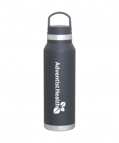 25 oz double wall 18/8 stainless steel thermal bottle with copper vacuum insulation, threaded insulated lid with carrying handle, high polish accent, stainless steel base, and powder coated finish. Hand wash recommended; Do not microwave. Dimensions: 10 H x 3".