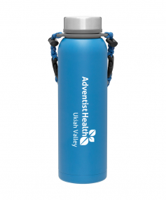 32 oz double wall 18/8 stainless steel thermal bottle with copper vacuum insulation, insulated stainless steel threaded lid, silicone ring, removable strap with buckles, removable clasps, and powder coated finish. Individual gift box. Hand wash recommended. Do not microwave. Complies with FDA, Prop 65. 11" H x 3.1875" W