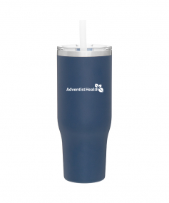40 oz double wall 18/8 stainless steel thermal tumbler with copper vacuum insulation, stainless steel rim, dual-purpose push-on clear lid, matching sliding closure, flexible wide silicone straw, and powder coated finish