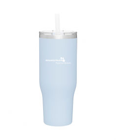 40 oz double wall 18/8 stainless steel thermal tumbler with copper vacuum insulation, stainless steel rim, dual-purpose push-on clear lid, matching sliding closure, flexible wide silicone straw, and powder coated finish