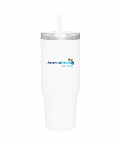 40 oz double wall 18/8 stainless steel thermal tumbler with copper vacuum insulation, stainless steel rim, dual-purpose push-on clear lid, matching sliding closure, flexible wide silicone straw, and powder coated finish