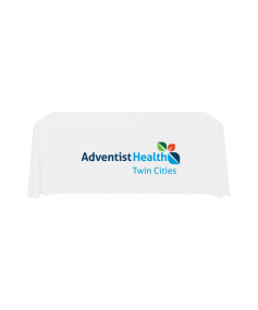 6' Standard PolyPoplin Throw style table cover with one color logo. Designed for quick and easy use while looking great. All corners are rounded meaning they will not gather and lay on the floor. Floor length on all 4 sides. Made from woven polyester. 72" L x 30" D x 29" H