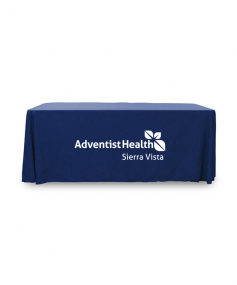 6' Standard PolyPoplin Throw style table cover with one color logo. Designed for quick and easy use while looking great. All corners are rounded meaning they will not gather and lay on the floor. Floor length on all 4 sides. Made from woven polyester. 72" L x 30" D x 29" H