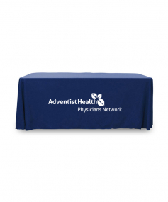 6' Standard PolyPoplin Throw style table cover with one color logo. Designed for quick and easy use while looking great. All corners are rounded meaning they will not gather and lay on the floor. Floor length on all 4 sides. Made from woven polyester. 72" L x 30" D x 29" H