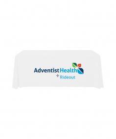 6' Standard PolyPoplin Throw style table cover with one color logo. Designed for quick and easy use while looking great. All corners are rounded meaning they will not gather and lay on the floor. Floor length on all 4 sides. Made from woven polyester. 72" L x 30" D x 29" H