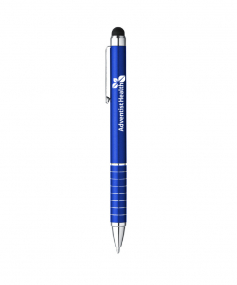 Aluminum Twist Action Ballpoint; Bold Enamel Color Finish; Shiny Silver Top, Clip, Pen Tip And Decorative Multiple Band Accents; Capacitive Soft Rubber Stylus Keeps Your Screen, Fingerprint Free! Comes With Black Ink. Complies with Prop 65. 2 1/4" W