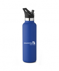20 oz. Narrow-mouth vacuum-insulated bottle. Features a flip-top straw lid with ergonomic top finger loop. Keeps contents cold for 24 hours. Powder coat finish with copper lining, double wall 18/8 stainless steel, proprietary BPA-free insulated lid. Bottle comes with both screw-on lid and straw lid. 11" H x 2 7/8" Diameter.