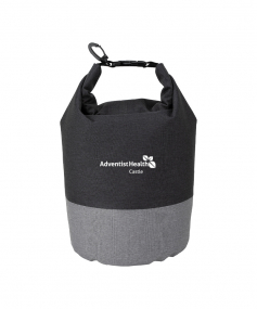 Keeps your items dry and comes in a chic two-tone design. It has a roll top closure with a buckle to connect to other bags and a carabiner clip to connect to a backpack or tether to a raft rope. Made from heathered 300D polyester, it has a 5 liter capacity and can float if dropped in water. Complies with Prop 65. 7" W x 13" H x 7" D