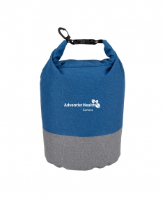 Keeps your items dry and comes in a chic two-tone design. It has a roll top closure with a buckle to connect to other bags and a carabiner clip to connect to a backpack or tether to a raft rope. Made from heathered 300D polyester, it has a 5 liter capacity and can float if dropped in water. Complies with Prop 65. 7" W x 13" H x 7" D