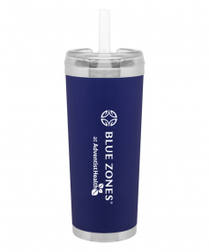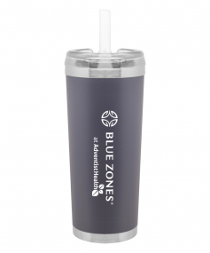 24 oz double wall 18/8 stainless steel thermal tumbler with copper vacuum insulation, stainless steel rim and base, threaded Eastman Tritan lid, snap closure, straw opening, and flexible wide silicone straw.