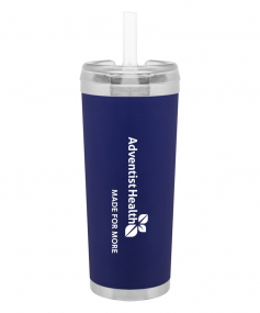 24 oz double wall 18/8 stainless steel thermal tumbler with copper vacuum insulation, stainless steel rim and base, threaded Eastman Tritan lid, snap closure, straw opening, and flexible wide silicone straw.