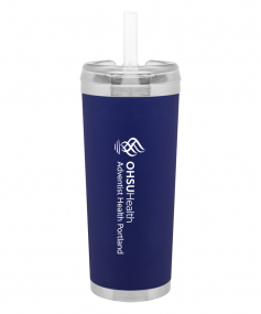 24 oz double wall 18/8 stainless steel thermal tumbler with copper vacuum insulation, stainless steel rim and base, threaded Eastman Tritan lid, snap closure, straw opening, and flexible wide silicone straw.
