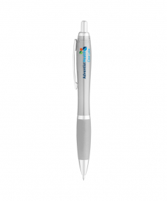 Translucent color curvaceous barrel; shiny silver accents; bold color rubberized comfort grip and smooth flow gel ink. *silver pen has no rubberized grip. It's metallic silver finished.