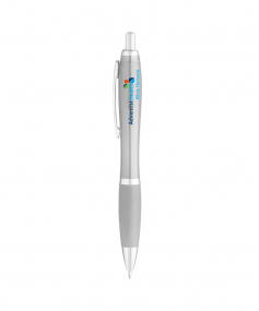 Translucent color curvaceous barrel; shiny silver accents; bold color rubberized comfort grip and smooth flow gel ink. *silver pen has no rubberized grip. It's metallic silver finished.