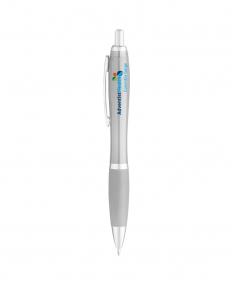 Translucent color curvaceous barrel; shiny silver accents; bold color rubberized comfort grip and smooth flow gel ink. *silver pen has no rubberized grip. It's metallic silver finished.