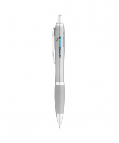 Translucent color curvaceous barrel; shiny silver accents; bold color rubberized comfort grip and smooth flow gel ink. *silver pen has no rubberized grip. It's metallic silver finished.