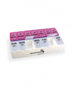 The large-capacity, easy-open and snap-tight compartments are printed with days of the week plus AM and PM. Pill compartment is 7/8" x 1 1/2" x 1". Complies with Prop 65. 7 1/4" L x 4 1/8" W x 1 1/4" H