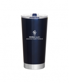20 oz double wall 18/8 stainless steel thermal tumbler with vacuum insulation, and clear acrylic push-on swivel lid. Hand wash recommended. Do not microwave. Complies with FDA, Prop 65. 7.125" H x 3.75" W