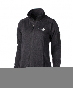 New - Ladies Villa sweater fleece jacket with defined waistline. 100% polyester, 9.73 oz/yd2/330gsm. Heat sealed bicep pocket, MP3 pocket, zipper pockets and storm flap on placket. Companion style. Easy Care. Audio port.