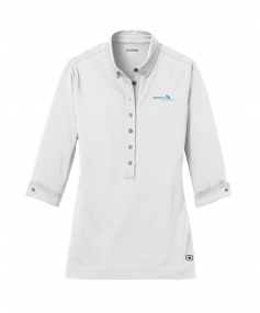 Break away from the ordinary in this button-down style polo that features cuffed 3/4 sleeves.