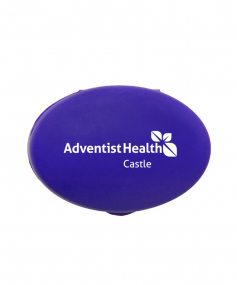Oval-shaped, lightweight, compact design fits in pockets or purses to carry a variety of pills, large or small. Complies with Prop 65. 1 5/16" W x 1 7/8" H x 7/8" D