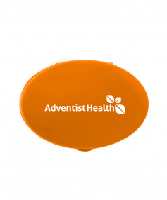 Oval-shaped, lightweight, compact design fits in pockets or purses to carry a variety of pills, large or small. Complies with Prop 65. 1 5/16" W x 1 7/8" H x 7/8" D