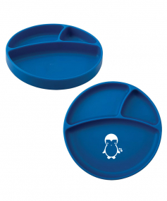 Suction base adheres firmly to surfaces for easy mess-free meals and snacks. Features a tri-sectional design. It is easy to clean and dishwasher safe. It is also BPA-free and FDA compliant durable silicone. Black or white FDA compliant ink available for decoration. Suitable for all ages. Complies with ASTM, CCPSA, CPSIA, FDA, Food Grade, Prop 65. 8 1/8"" D x 1 1/4"" Thick