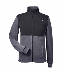 Pillow tech fabric: quilted, lightweight with warmth-retaining fill; Encore double-knit fleece with woven insulation for warmth and comfort.